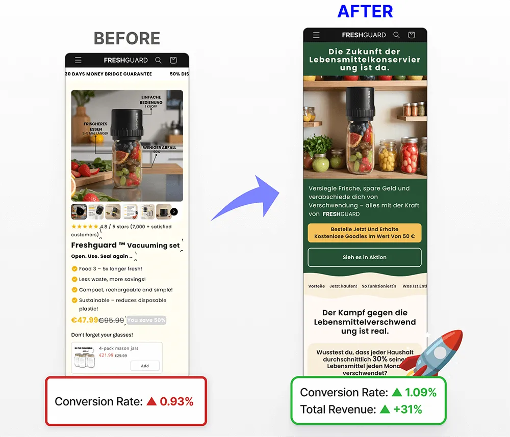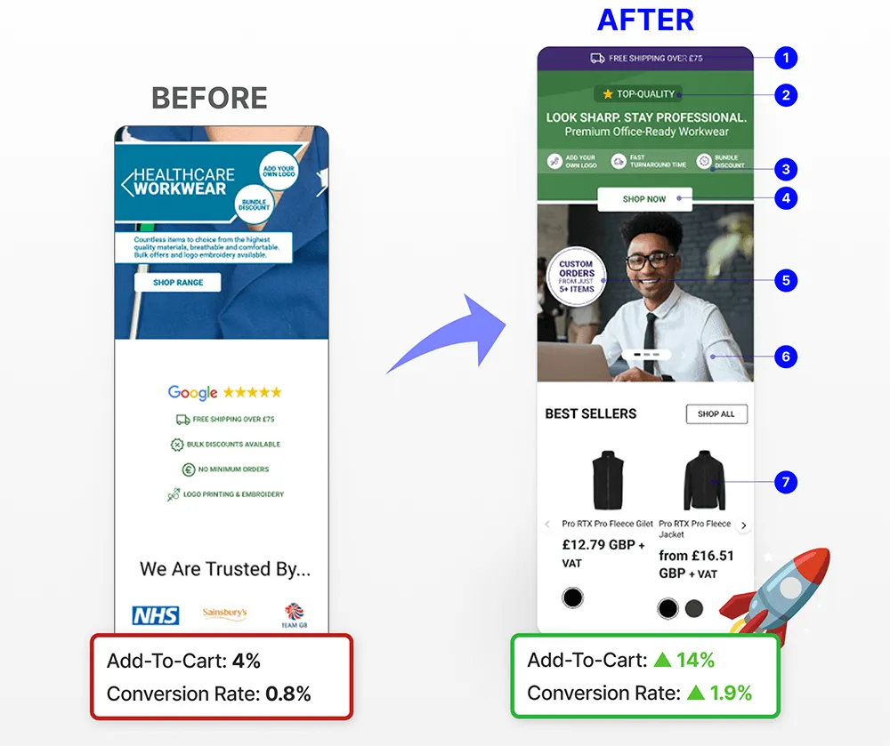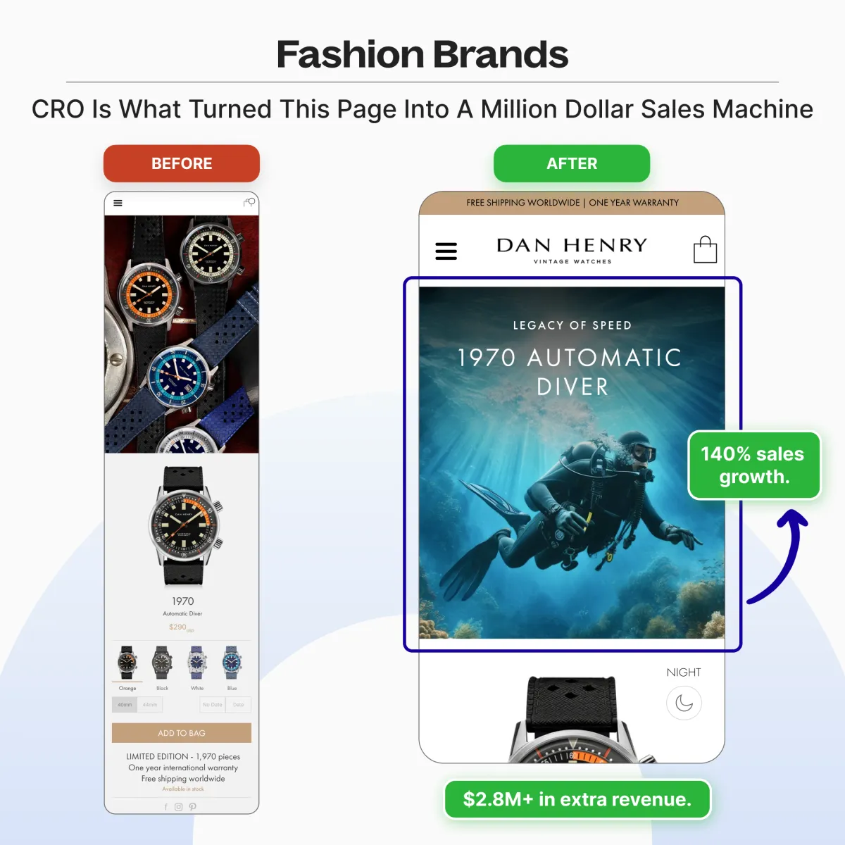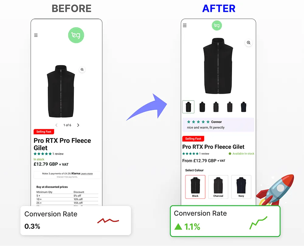 Thank you for creating our custom product page, it’s both beautiful and functional. Our conversion rate has increased from 5.18% to 9%!"